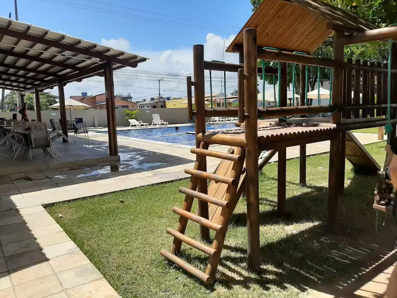 El condominio TORRES DO PORTO es NUEVO, con una excelente zona de piscina con parrillas, mesas con sillas y sombrillas para que el huésped disfrute de sus momentos de ocio.